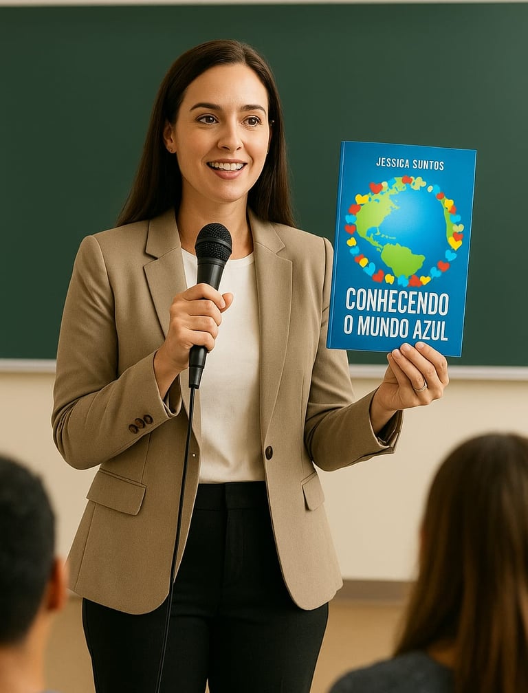Dentro do projeto, Jéssica idealizou a antologia do livro Conhecendo o Mundo Azul, que reúne a colaboração de 13 profissionais de diferentes áreas, todos engajados em compartilhar conhecimentos, experiências e práticas que fortalecem a rede de apoio e o olhar inclusivo. Essa união de vozes dá ainda mais força à missão de levar informação, esperança e amor para cada família que faz parte desse universo.
